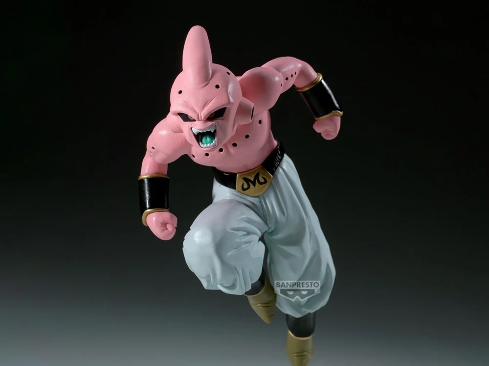 Este modelo presenta a Kid Buu, la forma más peligrosa y caótica de Majin Buu, en una pose dinámica que refleja a la perfección su naturaleza impredecible y destructiva. La expresión de su rostro transmite toda su ferocidad, con una sonrisa amenazante que recuerda a los momentos en los que puso a la humanidad y al universo entero contra las cuerdas. La escultura logra capturar los detalles de su diseño original: su piel de tono rosado uniforme, el característico pantalón blanco holgado con cinturilla negra y el inconfundible emblema de la “M” en su frente que lo identifica como el último y más poderoso engendro del mal.