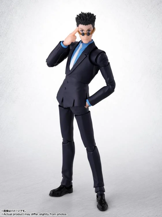 La escultura presenta a Leorio con su clásica vestimenta formal: un elegante traje azul oscuro acompañado de camisa blanca y corbata, que le otorgan esa imagen seria y madura que intenta proyectar, aunque sus reacciones impulsivas lo traicionen constantemente. El esculpido logra transmitir perfectamente la caída natural de las telas, los pliegues del traje y hasta la forma de los zapatos, lo que otorga un realismo sorprendente dentro del estilo característico de S.H. Figuarts.