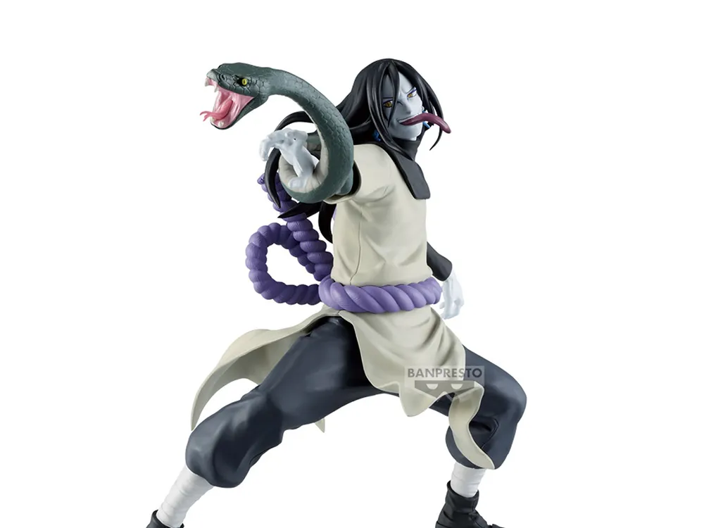 Atrévete a invocar el poder de las serpientes y añade a Orochimaru a tu vitrina. Una figura que representa la ambición, el conocimiento y la oscuridad del mundo ninja en una obra de arte de Banpresto.