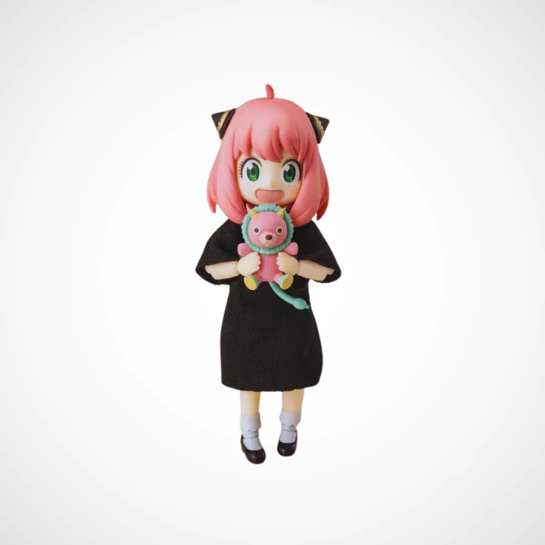 La figura también incluye la adorable muñeca Chimera, compañera inseparable de Anya, que añade un nivel extra de detalle y autenticidad. Las múltiples manos intercambiables permiten diversas poses y acciones, haciendo que esta figura sea altamente versátil para exhibición y fotografía.